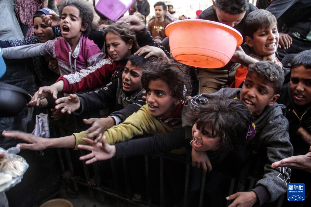 2024年12月23日★ღღ★ღ,巴勒斯坦儿童在加沙城领取食物★ღღ★ღ。新华社发(马哈茂德·扎基摄)